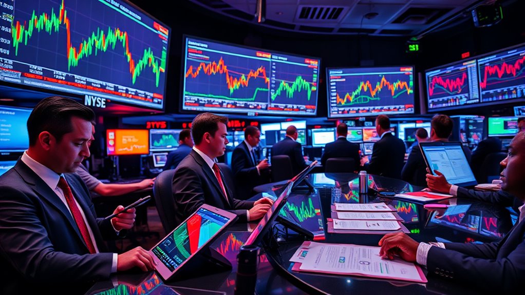 To protect yourself during high-volatility periods, you should implement stop loss strategies to limit potential losses and avoid emotional decision-making. Diversification tactics also help by spreading risk across different assets, reducing overall exposure to sudden market swings. Stay updated on market trends, maintain discipline, and avoid over-leveraging. These approaches can help you navigate turbulent markets more safely and preserve your capital during unpredictable times.