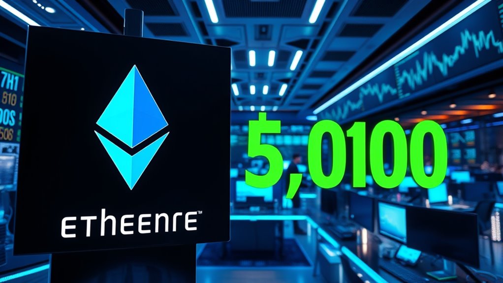 The surge past $5,000 for Ethereum comes as ETF approvals and positive regulatory news boost investor confidence. You’ll notice mainstream adoption is accelerating, and more institutions are entering the market, reinforcing Ethereum’s long-term potential. This momentum also highlights increased blockchain use across industries and a maturing market. If you want to understand how these developments could shape Ethereum’s future and impact your investments, keep exploring the evolving landscape behind this remarkable rally.