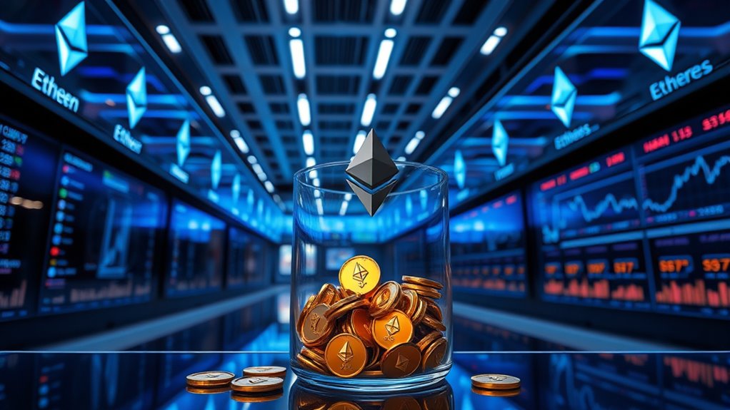 When Ethereum staking hits a record high, it reduces the amount of liquid ETH available for trading and spending. As more investors lock their ETH to earn staking rewards, the circulating supply shrinks, which can lead to increased price stability and encourage longer-term holding. This shift impacts market dynamics and investor behavior. If you want to understand how this trend affects your investments and the network’s security, there’s more to explore below.