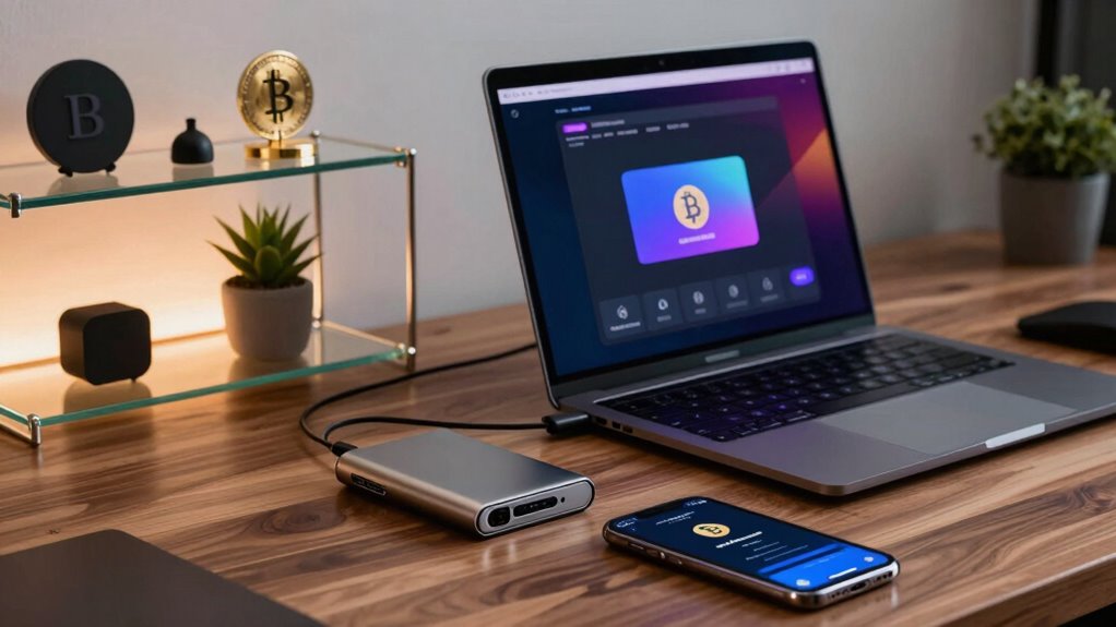 After the transfer completes, verify that your crypto appears in your self-custody wallet. Regularly check your wallet’s security settings and keep your device’s firmware and wallet software updated to protect against vulnerabilities. Remember, the security of your crypto depends largely on your vigilance, especially in maintaining secure backup procedures and guaranteeing your wallet’s safety. Taking these steps helps secure your assets remain protected and under your control, giving you peace of mind in holding your crypto securely.