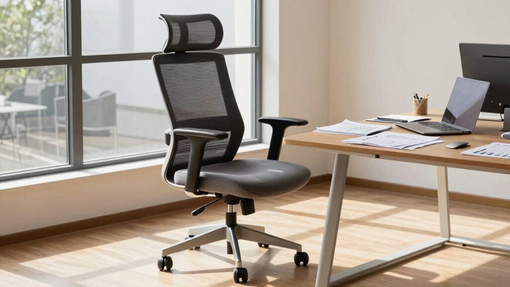 Additionally, ergonomic chairs promote postural health, which is essential for maintaining long-term physical well-being. Your employee well-being isn’t just about avoiding pain; it’s about fostering a sense of stability and care in a high-stress environment. When you feel physically supported, you experience less stress and fatigue, which boosts morale and resilience. Properly adjusted ergonomic chairs also support ergonomic support, helping to prevent injuries and discomfort. Incorporating ergonomic solutions in your workspace can also enhance overall workplace safety, reducing the risk of injury from prolonged poor posture. It’s also crucial to recognize that ergonomic furniture can contribute to creating sustainable work environments that prioritize biodiversity and overall health, aligning with sustainable living practices. It helps create an environment where your body’s needs are prioritized, leading to improved mental clarity and emotional stability. Recognizing the importance of physical comfort can significantly improve overall productivity and job satisfaction. This can translate into heightened engagement and a proactive attitude, both of which are essential during volatile periods when swift, clear thinking is needed.