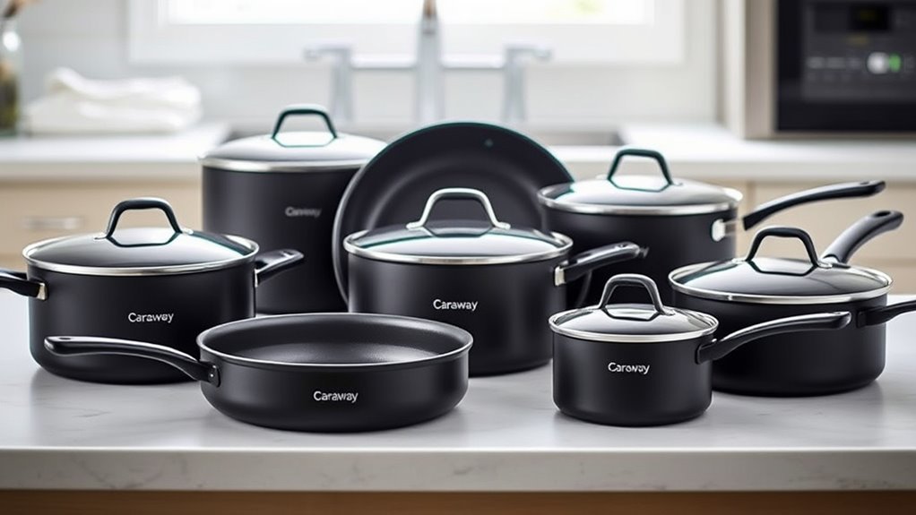 If you’re looking for the best Caraway cookware sets of 2025, I’ve got you covered. I’ve reviewed options from 12-piece essentials to extensive 31-piece collections, all with healthy, non-stick ceramic surfaces and space-saving designs. Whether you want versatile everyday pieces or compact sets for small kitchens, I can help you find the perfect fit. Keep exploring, and you’ll discover all the details to make a confident choice.