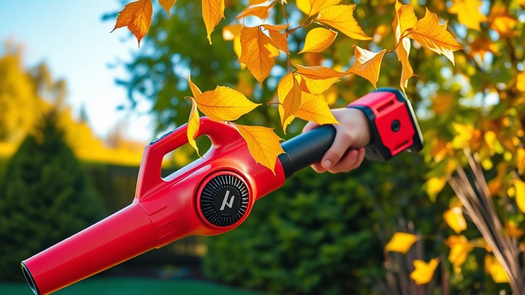 Lightweight cordless leaf blowers, usually weighing under 5 pounds, make yard work much easier by allowing you to steer with less effort and fatigue. Their compact design helps with quick storage and easy transport, whether in your vehicle or shed. Adjustable and ergonomic handles improve grip comfort and control, especially during longer tasks or for users with limited strength. Battery size and weight influence portability—larger batteries offer longer runtime but can add weight, affecting handling. The lightweight construction also enables one-handed operation, making it ideal for quick cleanups and navigating tight spaces effortlessly. Overall, a lighter blower reduces strain and enhances maneuverability, making yard cleanup more manageable and less tiring, especially when tackling larger or more detailed tasks.