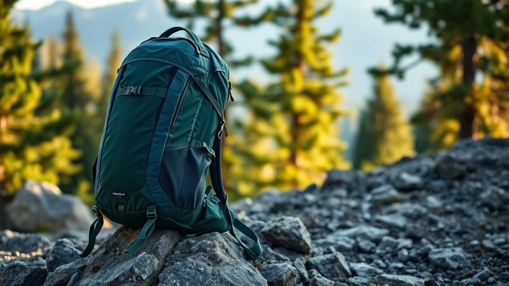 Lightweight hiking backpacks make a significant difference on long or multi-day trips by reducing fatigue and easing the strain on your body. Packs under 2 pounds help you conserve energy, especially when carrying heavy loads. Packability is also key—foldable models that compress into small pouches make storage and transport easier. The weight of your pack should balance capacity and comfort; a bulky pack can be cumbersome, while a lightweight one can feel inadequate. Using materials like rip-stop nylon or high-denier polyester helps cut weight without sacrificing durability. Ergonomic features such as padded straps and back panels add comfort without extra bulk. Overall, choosing a pack that’s light and portable enhances your hiking experience, making even challenging treks more manageable.