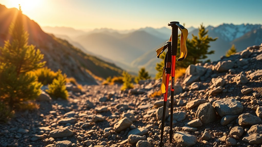 Choosing the right trekking poles is like finding the perfect compass for your adventure—each one guiding you smoothly through trails and treacherous terrains. With options that range from lightweight whispers to sturdy giants, you’ll be equipped to conquer any path with confidence. So, pick your ideal partner and let it be your trusty steed on this wild journey. After all, the right poles turn every hike into a memorable story waiting to be written.