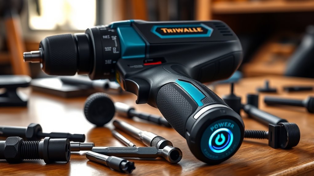 When choosing an impact driver, I look for safety features like a quick-stop or brake function that halts the tool instantly, ensuring control. An ergonomic grip reduces fatigue and slips, while a vibration reduction system protects my hands during prolonged use. I also prefer models with a lock-off switch to prevent accidental activation. These features keep me safe and improve my efficiency on the job.