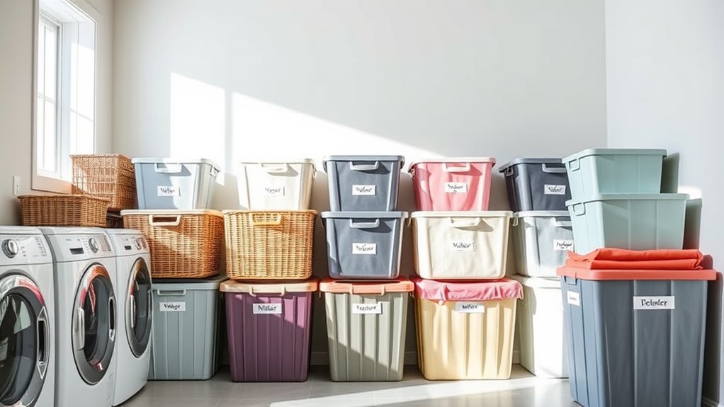When space is limited, selecting a laundry hamper with a smart design can make a significant difference. Collapsible or foldable hampers are game-changers, as they reduce in size when not in use, freeing up precious space. Narrow and slim-profile hampers fit perfectly into tight corners or narrow hallways, making the most of small areas. Multi-compartment hampers allow for organized sorting while occupying less floor space than multiple baskets. Compact hampers with integrated lids or covers keep laundry out of sight, helping maintain a tidy look in confined environments. Additionally, lightweight hampers with handles make it easy to move and reposition them without hassle. Prioritizing these space-saving features guarantees your laundry area remains functional and clutter-free, even in limited spaces.