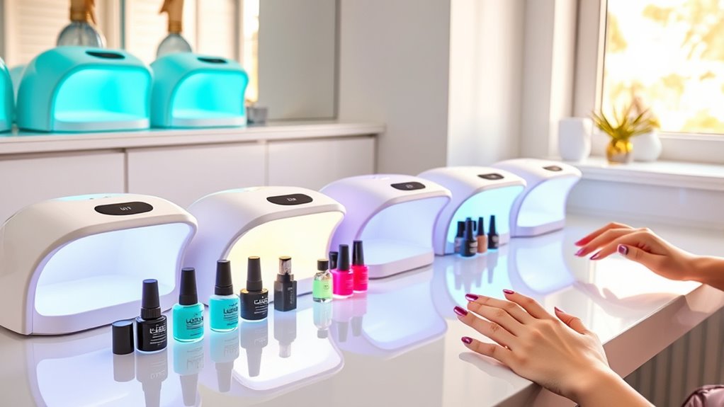 If you’re looking for the 15 best LED nail lamps to achieve salon-quality manicures at home, I’ve got you covered. These devices range from compact, user-friendly models with preset timers to powerful units with automatic sensors and large curing spaces. They support all gel types, cure quickly and evenly, and come with safety features for comfortable use. Keep going, and you’ll discover the top options suited for every budget and skill level.