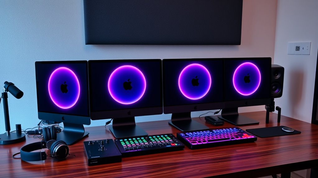 Just like a master conductor guiding an orchestra to perfection, selecting the right Mac Studio can elevate your audio production to new heights. Whether you’re orchestrating complex compositions or fine-tuning every detail, these top models offer unmatched performance and sound clarity. Think of them as your trusty baton—empowering you to create symphonies of sound with ease and precision. The right choice will harmonize your creativity and technology seamlessly.