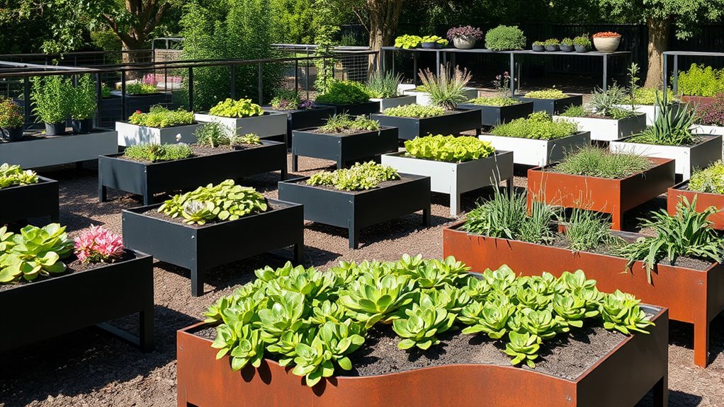 Looking to upgrade your garden with durable, stylish metal raised beds in 2025? I’ve found the top options that combine weather resistance, easy assembly, and sleek designs, perfect for vegetables, herbs, or flowers. From galvanized steel structures to modular and oval models, these beds will last decades and boost your garden’s look and productivity. Keep exploring to discover the best choices and tips for selecting the right fit for your outdoor space.