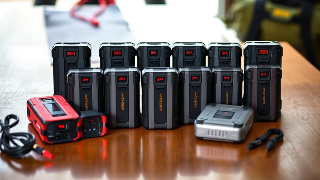 When choosing a portable jump starter, remember, it’s not just about power but peace of mind. Like a trusted friend in your car’s trunk, the right device guarantees you’re never left stranded. Think of it as a safety net woven with reliability and convenience. So, pick wisely, and let these powerful companions keep you moving—because in life’s journey, preparedness is the true road to confidence.