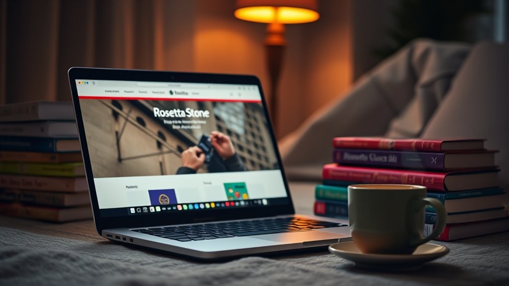 Choosing a Rosetta Stone lifetime subscription with strong support and resources guarantees you have the tools needed to succeed. Make sure it includes access to tutorials, guides, and customer service options so you can easily get help when needed. Verify that ongoing technical assistance is available to troubleshoot software or hardware issues without hassle. Check if there are supplementary materials like audio companions or practice tools that reinforce your learning process. It’s also helpful if the subscription offers progress tracking and feedback features, so you can monitor your improvement and stay motivated. Additionally, access to community forums or live tutoring options can provide social interaction and personalized guidance, making your language journey more engaging and effective. These resources are essential for maximizing your learning experience.