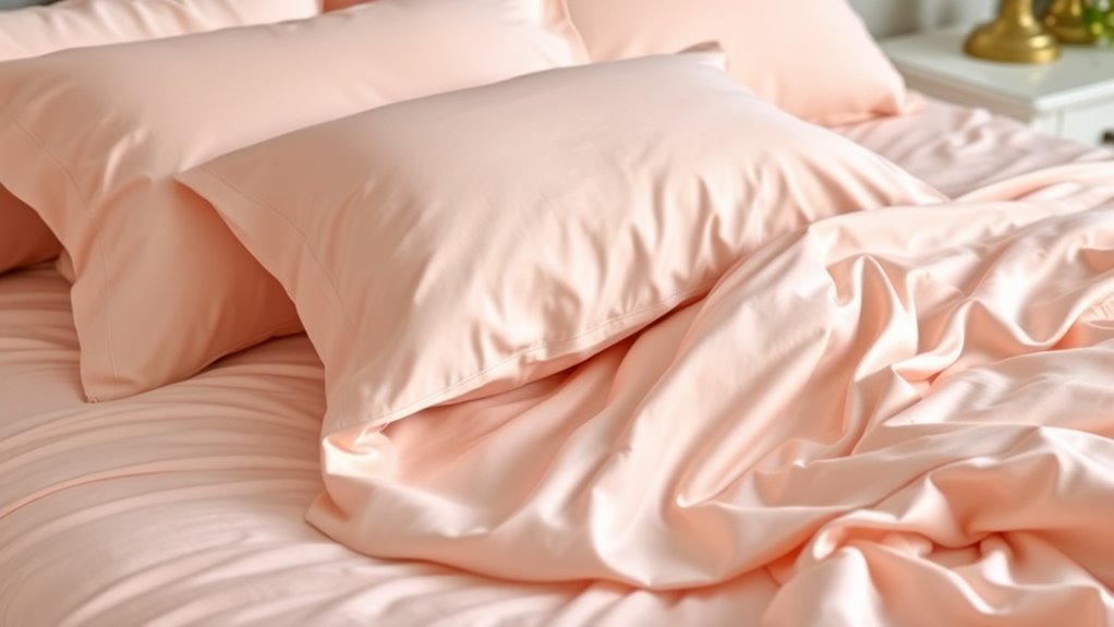 When choosing a silk pillowcase, I focus on quality standards, like the type of silk and thread count, to guarantee durability and comfort. It’s also important to pick the right size for your pillow and consider breathability to stay cool at night. Finally, I look for easy maintenance options so I can keep it looking and feeling great with minimal effort.