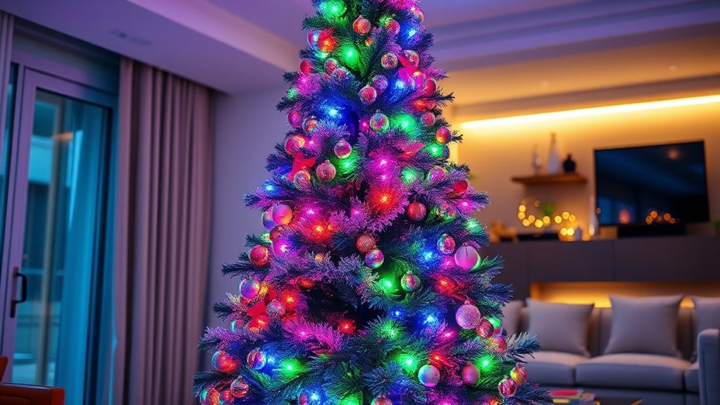 Ever wondered how to make your smart Christmas tree truly stand out? Lighting features play a huge role in creating a festive atmosphere. Many smart trees offer customizable LED lights with millions of colors and effects like flashing, chasing, or fading, so you can match your decor perfectly. Some models even sync with music, causing lights to dance or change with beats, adding an engaging dynamic to your holiday display. Dimmable and adjustable brightness settings let you set the mood, whether cozy or vibrant. Programmable scene modes and DIY lighting patterns allow for personalized themes for different occasions. Plus, compatibility with app control, remote control, and voice assistants makes adjusting and customizing your lighting effortless, ensuring your tree always looks exactly how you want it.