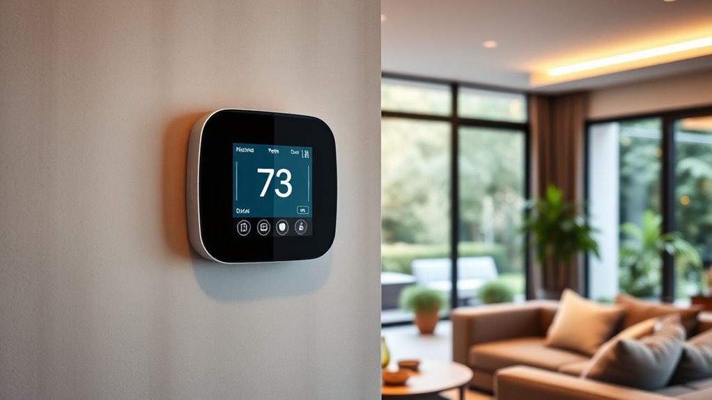 Smart thermostats protect your data with multiple security features. I guarantee they use encryption to keep your information safe, and I recommend strong, unique passwords for your accounts. Regular firmware updates are essential, as they patch security vulnerabilities. Two-factor authentication adds an extra layer of protection, and I avoid connecting them to unsecured Wi-Fi networks. These steps help prevent hacking and keep your home climate control secure.