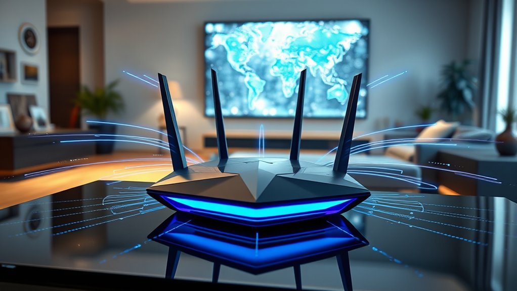 WiFi 7 routers boost gaming performance by offering faster speeds, lower latency, and more stable connections. I notice smoother gameplay with less lag and quicker response times, especially when multiple devices are connected. They use advanced technology like multi-channel aggregation and improved beamforming, which help create a strong, reliable signal. If you’re serious about gaming, upgrading to a WiFi 7 router can make a real difference in your experience.